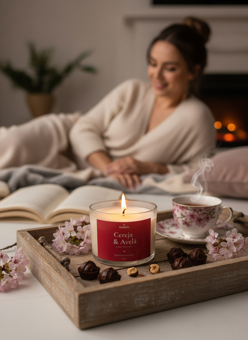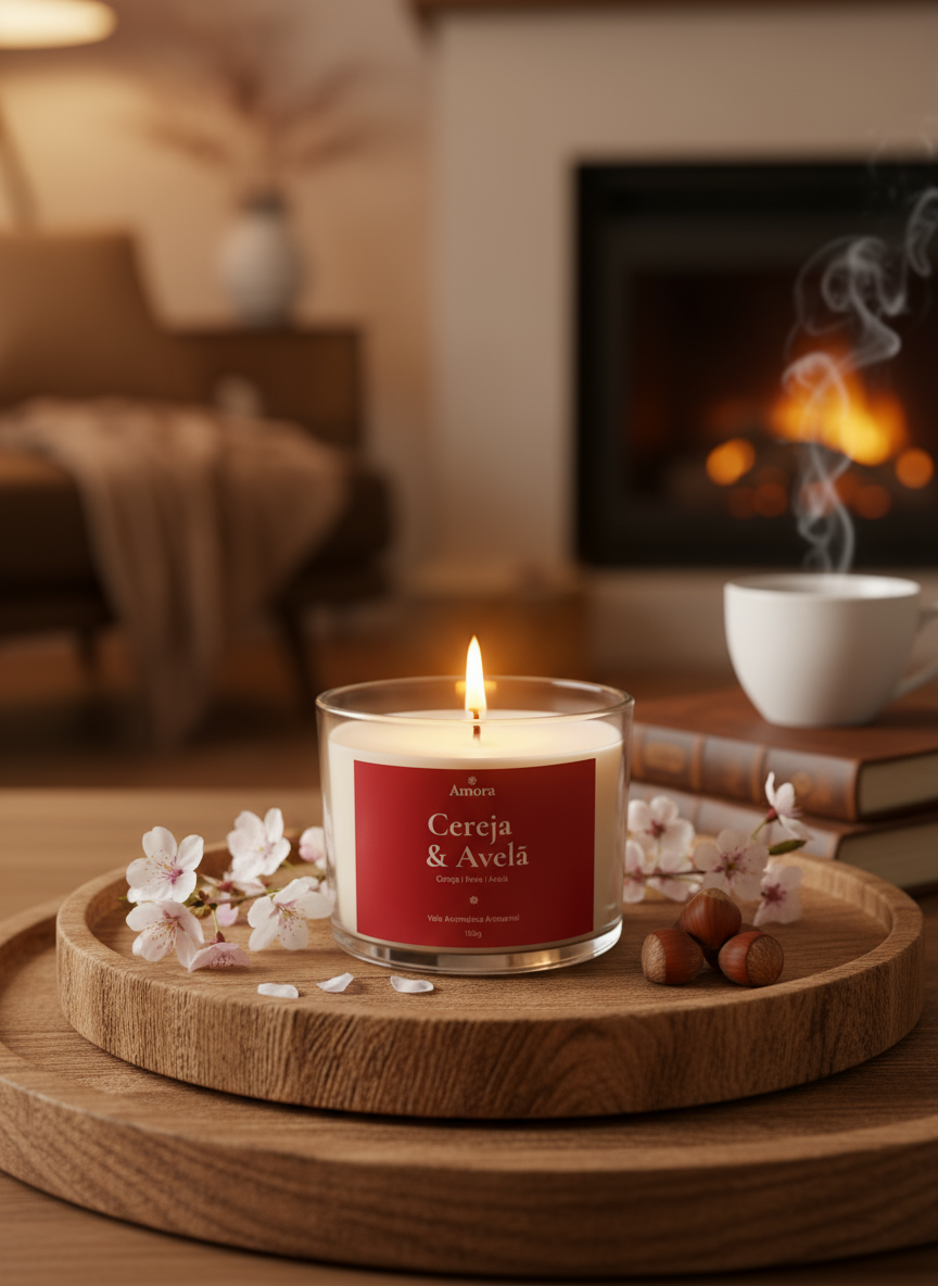 ✨ Vela Aromática Amora Essence – Cereja & Avelã | 30 horas de Sensualidade